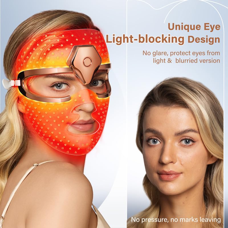 NEWKEY Wireless LED Face Mask Light Therapy, Silicone Red light therapy Mask for Wrinkles Skin Care at Home, Quick 10-Min Treatment, Lightweight