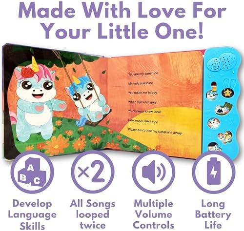 ❤️ NEW! SOOTHING MUSIC & BEAUTIFUL SONGS. Unlike the majority of sound books out there, our sound books feature a real mom singing in a loving and calming voice. Never electric sounding. The perfect Nursery Rhymes baby books 0-6 months, baby books 6 to 12 months and 18 month toys!