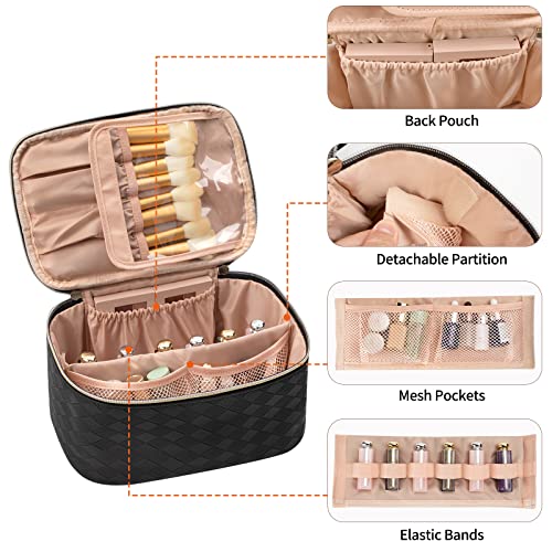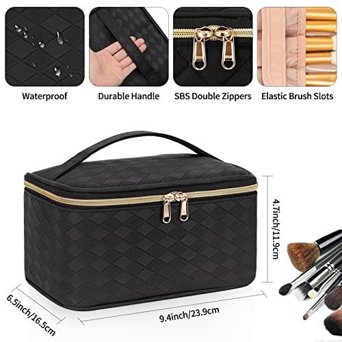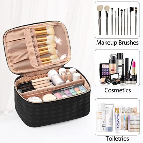 OCHEAL Makeup Bag, Portable Cosmetic Bag, Large Capacity Travel Makeup Case Organizer, Black Makeup Bags For Women Toiletry Bag for Girls Traveling With Handle and Divider-Black L