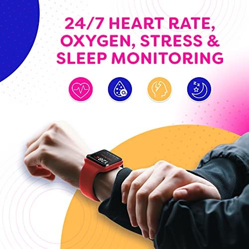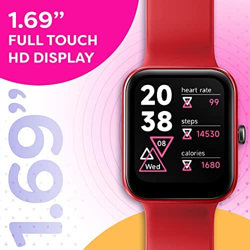 OCTANDRA Go VeryFit Smart Watch Heart Rate Blood Oxygen Saturation Sleep Monitor 1.69 Inch Step Counter Pedometer 5ATM Exercise Activity Fitness Tracker Watches for Men Women (ID207) (Red)