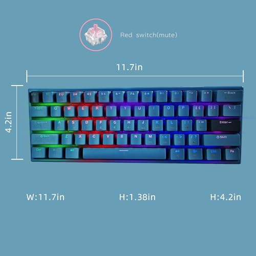 ONE-UP Portable 60% Mechanical Gaming Keyboard, LED Backlit Compact 61 Keys Mini Wired Office Keyboard with Red Switch, for Windows Laptop PC Mac – Black/Grey(Pale Blue)【Red Swich】