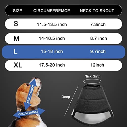 Pet Comfort Large Dog Cone Collar for Medium to Extra Large Dogs, Upgrade PVC Adjustable Recovery Elizabethan Cone for Dogs,Breathable Plush Material, Comfortably Eat, Sleep, and Play-L