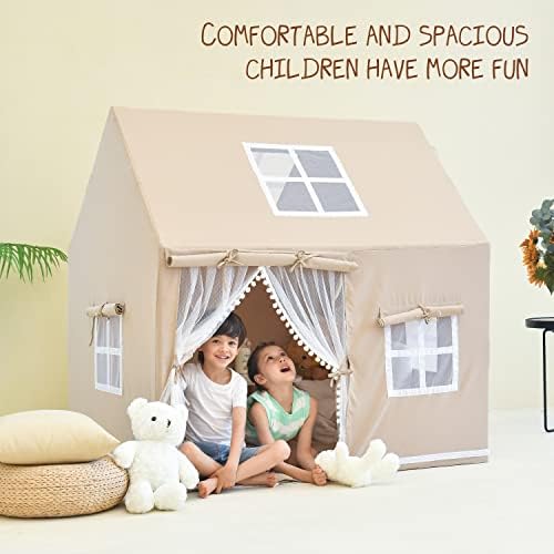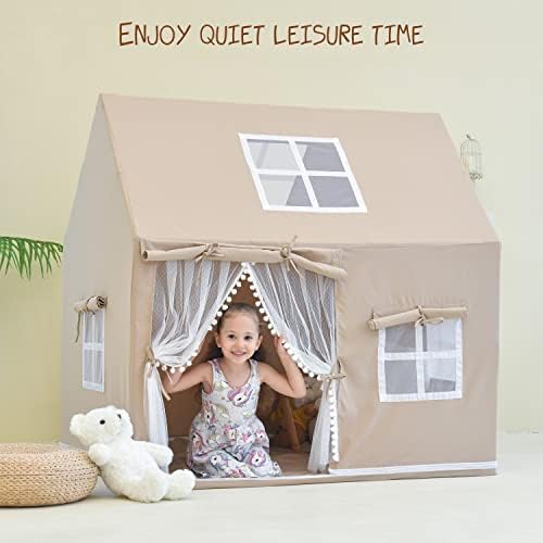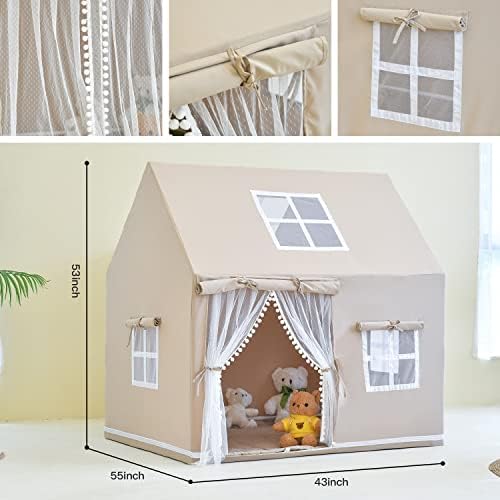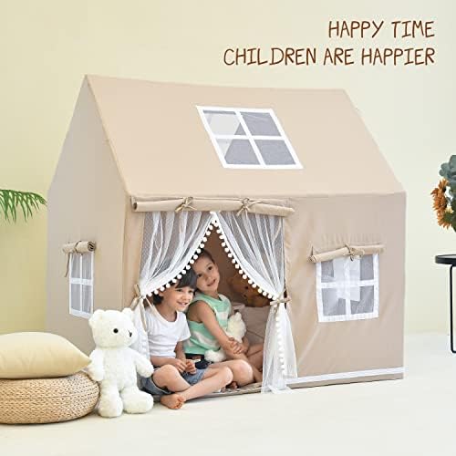 Play Tent, Zinvoda Children Play Tent Large Playhouse with Windows for Indoor & Outdoor, Natural Canvas Washable Foldable Play House Tent for Toddler Girls Boys