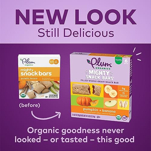 Plum Organics Mighty Snack Bars – Pumpkin and Banana – 0.67 oz Bars (Pack of 48) – Organic Fruit and Vegetable Toddler Food Snack Bars