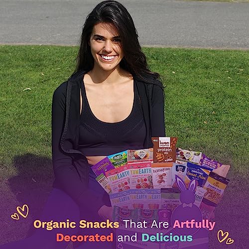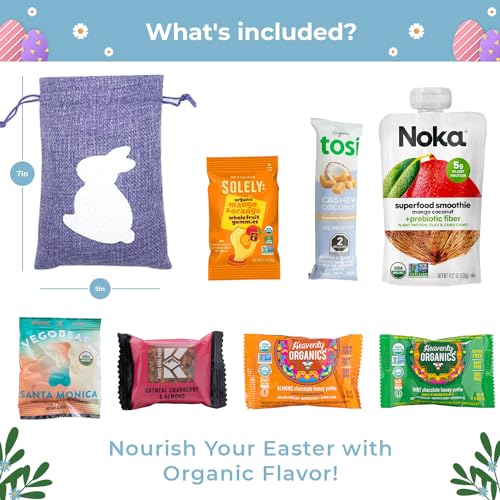 Prefilled Easter Organic Candies & Snacks with Healthy Organic Valentine’s Gift Basket: Variety of Fruits, Bars, Cookies, and Chips Snack Box Care Package Ideal Gift Basket for Families