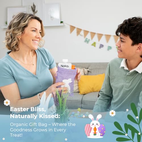 Healthy Organic Easter Gift Basket Alternative: The Bunny James Colorful Organic Easter Bag is an assortment of 7 premium organic snacks in cute blue bunny bag that are delicious and packed with nutrients.