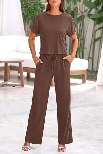 PRETTYGARDEN Womens Short Sleeve T Shirt Wide Leg Pants Tracksuit