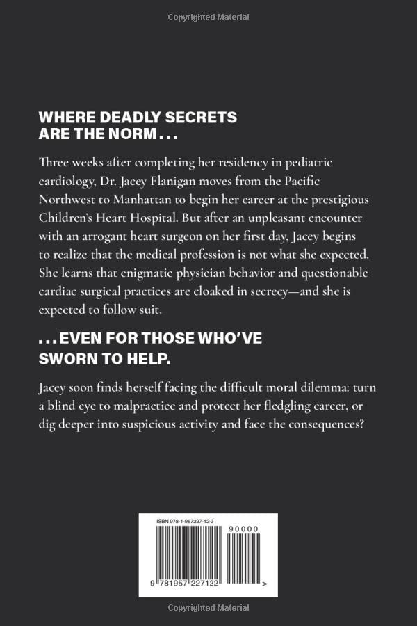 Dr. Jacey Flanigan has worked tirelessly to achieve her dream of becoming a pediatric cardiologist. But when she moves to Manhattan to begin her career at a prestigious children’s hospital, she discovers that the medical profession may not be what she expected. An encounter with an arrogant heart surgeon on her first day sets the tone for what’s to come – a world of enigmatic physician behavior and questionable cardiac surgical practices cloaked in secrecy.