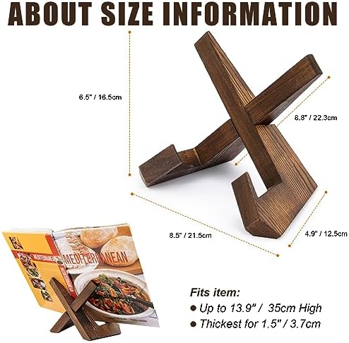 STURDY AND DURABLE: The cookbook holder is made of natural and high-quality solid wood, which is lighter and sturdier than bamboo. The wood is carbonized to show a beautiful and clear wood grain; all edges are smooth and comfortable through finely sanded. The cross-type assembly design is flexible, compact and stable in structure that doesn’t take up too much kitchen counter space.