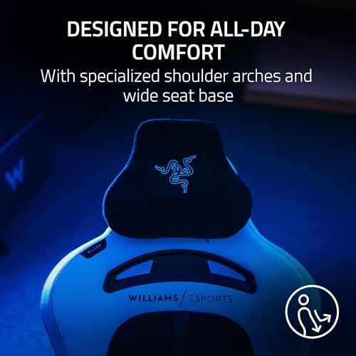 Razer Enki Pro Premium Gaming Chair: Upholstered Alcantara – All-Day Comfort – Lumbar Arch – Dual-Density Backrest – Reactive Seat Tilt & 152-Degree Recline – Memory Foam Headrest – Williams Esports