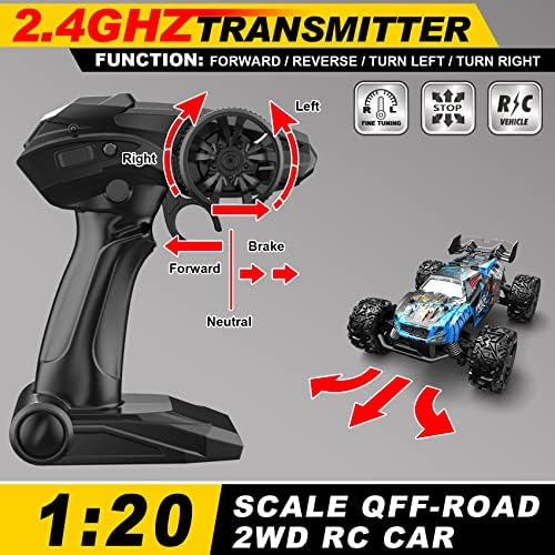 RC Cars 1:20 Scale Remote Control Car, 2.4GHZ Fast Racing Monster Car, All Terrains RC Truck with Two Rechargeable Batteries for Boys Kids Adults Christmas Birthday Gift