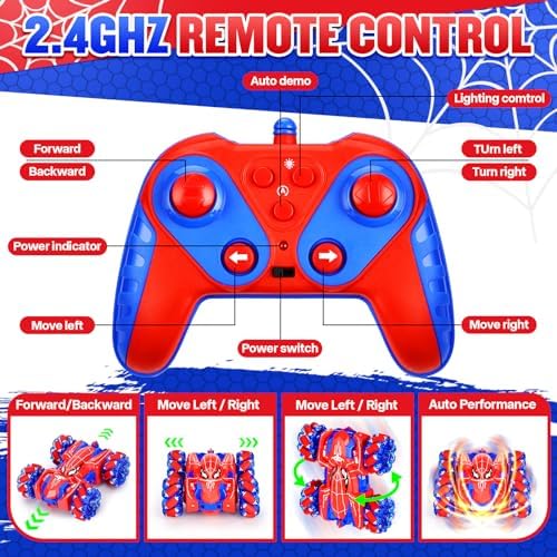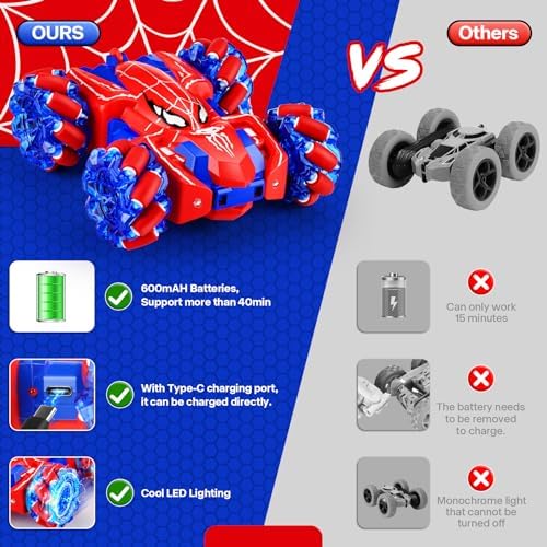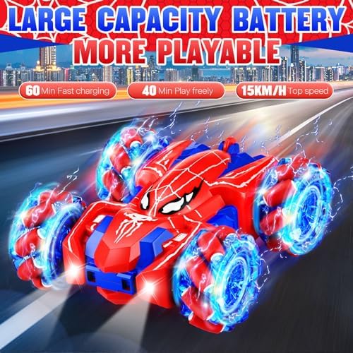 Remote Control Car for Boys 4-7,2.4GHz Double Sided RC Car Toy with Cool Lights,4WD 360° Rotating Stunt Rechargeable Drift Truck,Rc Cars toys for kids boys age 3-5 4-6 5-7 6-8 8-12