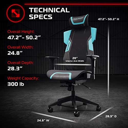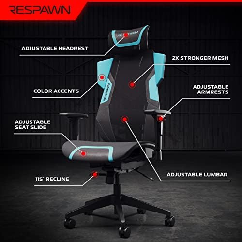 RESPAWN FLEXX Mesh Gaming Chair With Lumbar Support,Ergonomic Gaming Chair with Recline/Tilt Tension Controls, Adjustable Arms, 300lb Max Weight With Wheels for Computer/Desk/Office -Teal