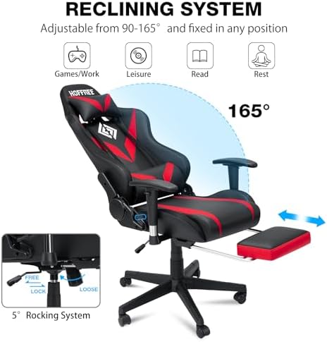 【Racing Style】90°-165° reclining backrest with imitation racing seat adjuster to make you feel like racing. Extra 5° rocking system brings you a leisure time more relaxing