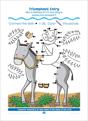 32 activity pagesFor ages 3 to 67.75″ x 10.75″ pages with durable glossy coverPreschoolers and kindergartners connect the dots, then color the picture from the Old and New TestamentsThis workbook provides practice in numbers 1-25, counting, and numerical order Each page also cross-references Scripture and shares teachings from the Bible Charming illustrations, bright colors, and playful scenes help make learning fun Perforated pages are easy to tear out for individual worksheets Slim and portable, perfect for on-the-go learning!