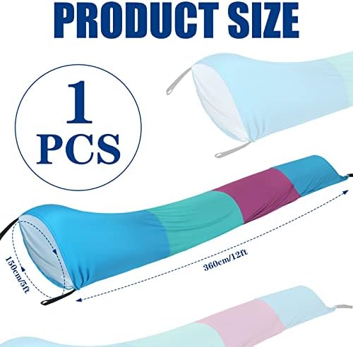 Package Includes: 1 sensory tube, the overall length is about 12 ft/ 365 cm when laying flat, and the perimeter of the edge is about 5 ft/ 150 cm, with 2 black carrying straps at each end; Our sensory tunnel is made up of 3 colors, blue, purple and green, whether your boy or girl needs sensory integration support or just wants to play, this is a suitable choice