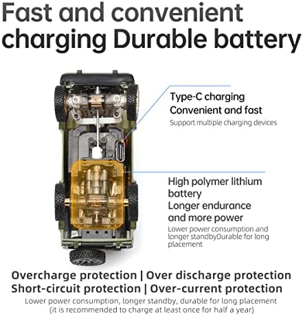 🚘Exquisite design and excellent handling — The first 1/64 4WD all-wheel-drive RC car, simulated shape: large shock travel, challenging off-road challenges, simulated tyres: BLUCCI KM3 35 Inch, 100% copper wheel counterweight, larger climbing angle, more simulated off-road stance