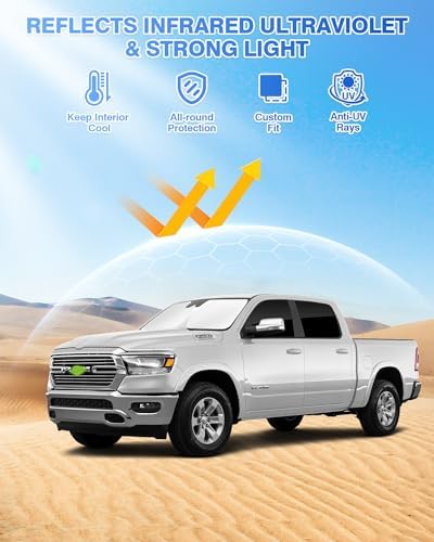 【Fit Like a Glove】Canvcle full window sunshade is specially designed for Dodge Ram 1500 2019-2024 with no gap. The window shade covers provide full UV protection for your car, keeping your car cooler on hot days.