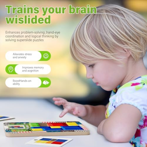 Super Slide Puzzle Games, Wooden Brain Teaser Puzzles for Kids Teens Adults, Travel Games Fine Motor Skills, Natural Health for Boys and Girls, Sliding Puzzle Toy