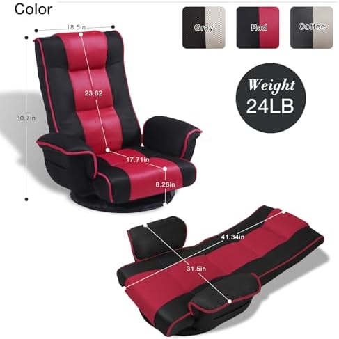 【14-Position Adjustment& 360° Swivel】:The floor chair is designed with adjustable 14-position backrest to fulfill different individual requirements. Adjust the backrest to your desired Angle with ease, which only need you to exert your body pressure on it. More, 360° swivel base brings much more convenience in turning around your body for added fun.
