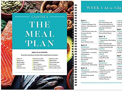 4 weeks of meal plans, grocery lists, and spaces to track your progress, plus bonus pages to plan for meals beyond the first 28 days