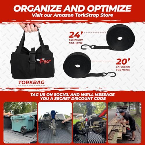 Be the first to review “TorkStrap HD750 | 14’x1.5” Spring Loaded Tie Down Straps – Adapts to Load Shifts – Heavy Duty 2250lbs Max Load – Just Pull Alternative to Ratchet Straps w/Hooks – Secure Motorcycles, Kayaks (2-Pack)”