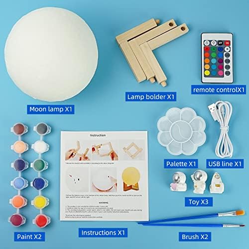 Unique Paint Your Own Moon Lamp Kit,16 Colors 5.9 Inch Moon Lamp Remote Control Arts Crafts for Boys Girls Art Supplies Birthday Gift for Kids Women Decompression Toy (Moon lamp)