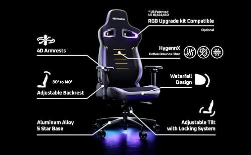 VERTAGEAR PL4800 Ergonomic Big & Tall Gaming Chair Featuring ContourMax Lumbar & VertaAir Seat Systems – RGB LED Kits Upgradeable – Carbon Black