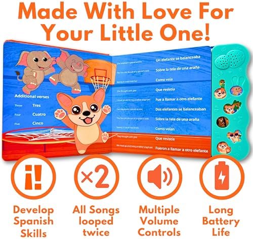 ❤️ MADE WITH LOVE FOR YOUR BABY. Created by a mom in Brooklyn, NY, these musical toys are the perfect baby books in Spanish. Educational books and learning toys that help kids learn Spanish through music. A great gift for baby showers, moms, dads and birthdays. Los mejores libros de musica en español, juegos musicales para bebes, libros para niños, cuentos infantiles en español and libro en español para niños. Los juguetes perfectos y canciones para niños para los niños. Juegos para niños.