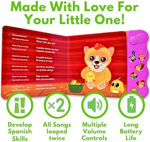 ❤️ MADE WITH LOVE FOR YOUR BABY. Created by a mom in Brooklyn, NY, these musical toys are the perfect baby books in Spanish. Educational books and learning toys that help kids learn Spanish through music. A great gift for baby showers, moms, dads and birthdays. Los mejores libros de musica en español, juegos musicales para bebes, libros para niños, cuentos infantiles en español and libro en español para niños. Los juguetes perfectos y canciones para niños para los niños. Juegos para niños.