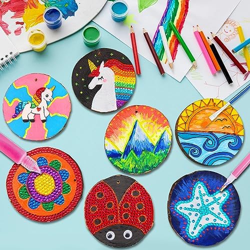 Wakestar Unfinishied Wood Slices for Arts and Crafts,Glow in The Dark Wooden Painting Kit for Kids Girls Age 5-12 Years Old,Creative Crafts Toys for Birthday Christmas Gifts