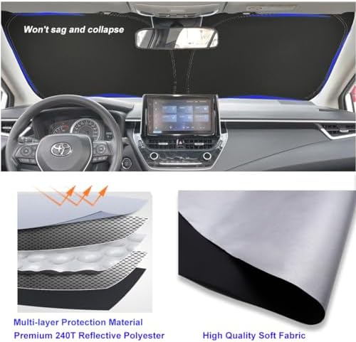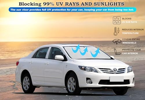 Windshield Sun Shade for Toyota Corolla 2009-2013 Front Window Sun Visor Protector Toyota Corolla SE XSE L LE XLE Hybrid Sedan Accessories Foldable Sunshade Blocks UV Rays Keep Your Car Cooler