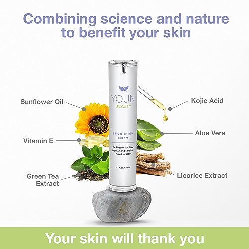 YOUN Beauty Brightening Cream with Kojic Acid, Gycolic Acid & Licorice Extract, 50ml – Hydroquinone-Free Skin Lightening Cream for Face, Neck & Décolleté